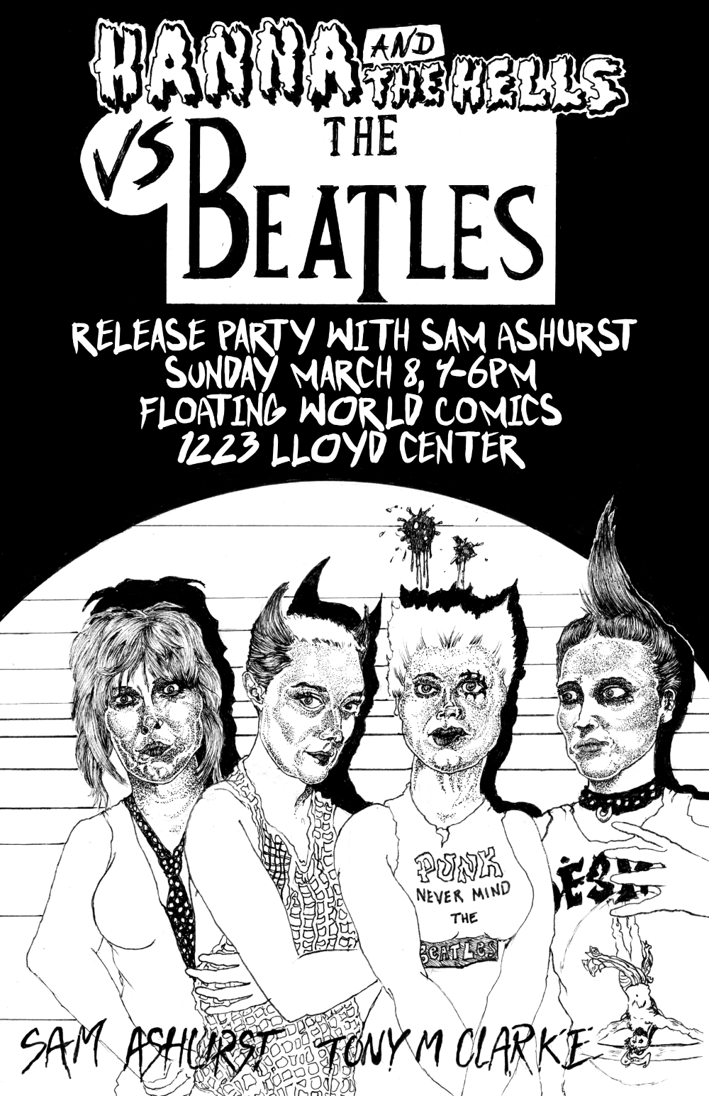 Phoney Beatlemania has bitten the dust! Join writer Sam Ashurst on March 8, to celebrate the release of his new comic, Hanna and The Hells Vs The Beatles.